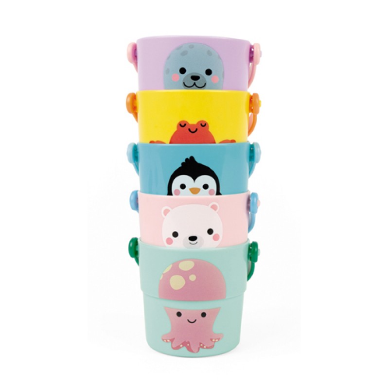 Voor de kleine waterratjes zijn deze leuke emmertjes uit de collectie van Jand. 5 activiteitenemmers om mee in het bad te spelen en overal mee naartoe te nemen! Vul je emmers met water of schuim en til ze zo hoog mogelijk op om het water uit de verschillende gaten te zien stromen.