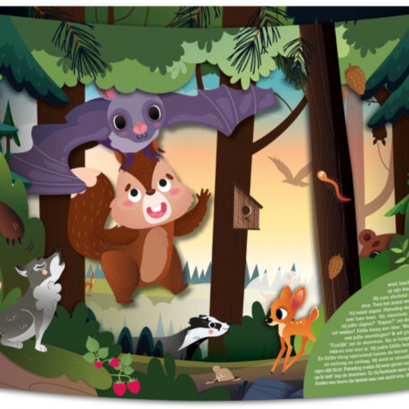 In dit leuke en avontuurlijke pop-upboek maak je kennis met de dieren van het bos. Samen met Eddie Eekhoorn duiken jullie in een spannend avontuur! Zijn nieuwsgierigheid brengt hem vaak in de moeilijkheden, dus nu maar hopen dat Eddie ook weer thuiskomt!