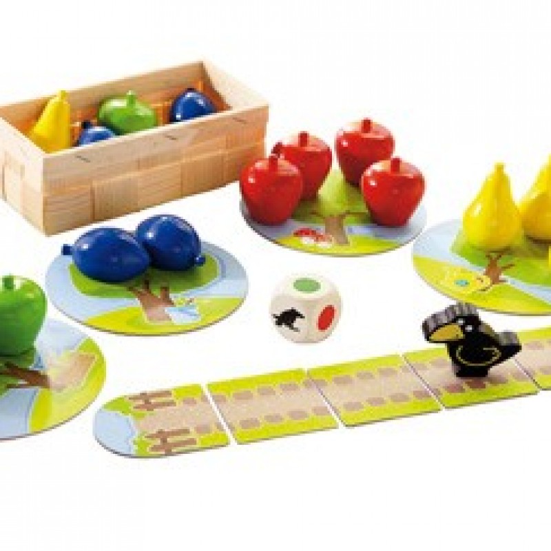 De spelklassieker "Boomgaard" van Haba voor de allerkleinsten: de regels zijn aan de leeftijd aangepast en het spelmateriaal is speciaal voor kleine kinderhanden gemaakt. De mooie, handzame houten stukken nodigen tot vrij spelen uit en stimuleren hierbij de motorische vaardigheden.