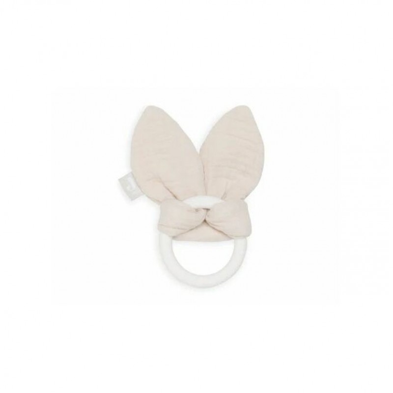 De zachte bunny oortjes zorgen voor een knisperend geluid dat de nieuwsgierigheid van je baby prikkelt en het speelplezier vergroot. Bovendien is deze bijtring volledig BPA-vrij, zodat je met een gerust hart je baby kunt laten sabbelen en kauwen. Geef je kleintje verlichting en plezier met onze schattige, veilige bijtring. Shop de Bunny ears bijtring in Olive Green, Wild Rose en moonstone.