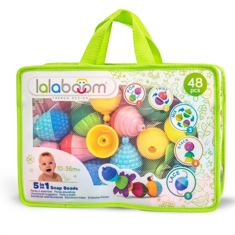 Lalaboom kralen bevorderen de motoriek, de fantasie, het visueel vermogen, een goede oog-hand coödinatie. Lalaboom voldoet aan de belangrijkste principes van de Montessorimethode. Het speelgoed nodigt kinderen uit om in hun eigen tempo te leren. Door te spelen en proberen worden ze aangemoedigd om hun zintuigen en capaciteiten verder te verkennen. Geschikt voor kinderen van 10 maanden tot 3 jaar.