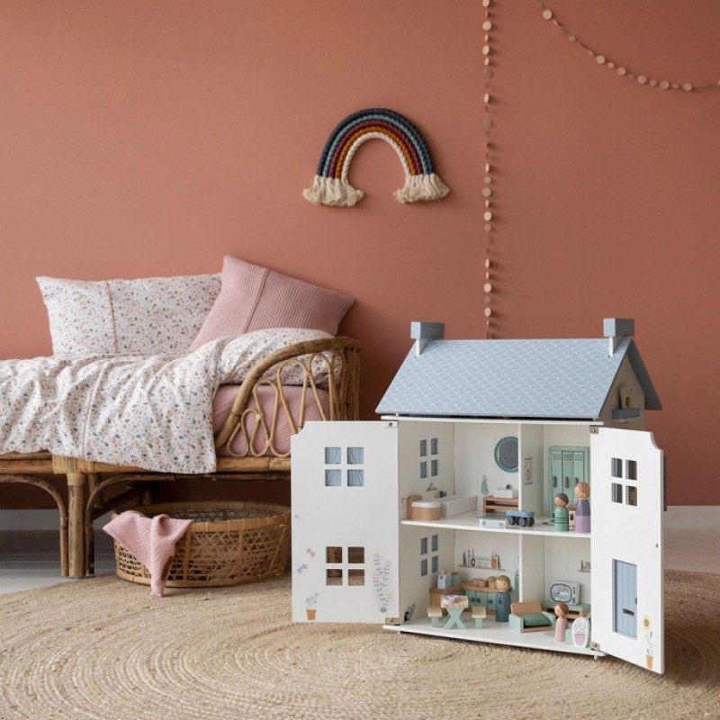 Dit klassieke poppenhuis van Little Dutch is een echte eyecatcher. Het stevige houten frame is voorzien van speelse blauwe luiken en een afneembaar blauw dak. Haal je het dak eraf, dan komt de zolder tevoorschijn. En er is meer: het dakpaneel is eigenlijk een tuin! Het poppenhuis wordt geleverd inclusief een basisset met 19 meubels en accessoires. Ook zitten er stickers bij waarmee je het huis helemaal in je eigen stijl kan aankleden.