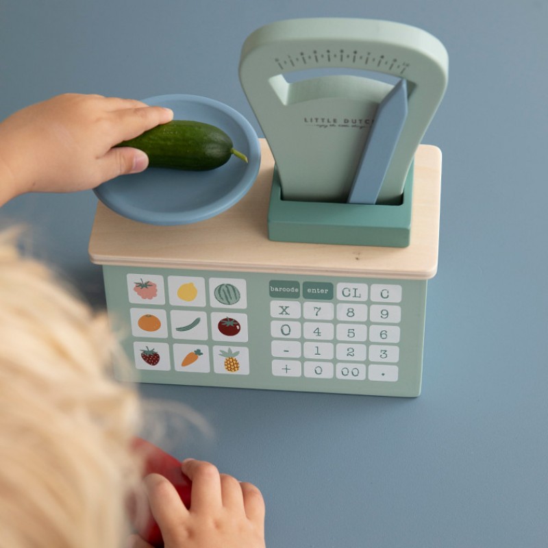 Deze Little Dutch weegschaal komt goed van pas in je marktkraam en keuken. De weegschaal is ontworpen in zachte kleuren en is onmisbaar met winkeltje spelen.